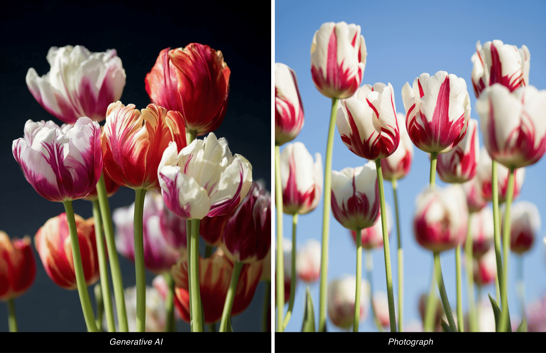 Last week, we kicked off our AI vs. Reality face-off with tulips, and now for the moment of truth, if you guessed the right one was the real deal, you got it right. The left image was created with Midjourney showing off the program’s impressive ability to generate hyperrealistic images.