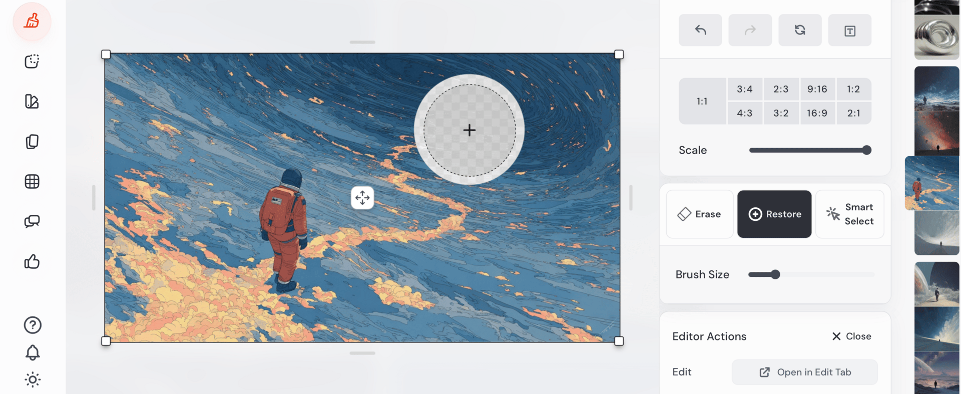 Next, refine it: select the areas you want fixed and guide the AI to seamlessly correct them. You can smooth textures, fix distortions, or remove glitches while keeping the rest of your image consistent and true to your style. Every adjustment updates in real time so you can see the improvements instantly.