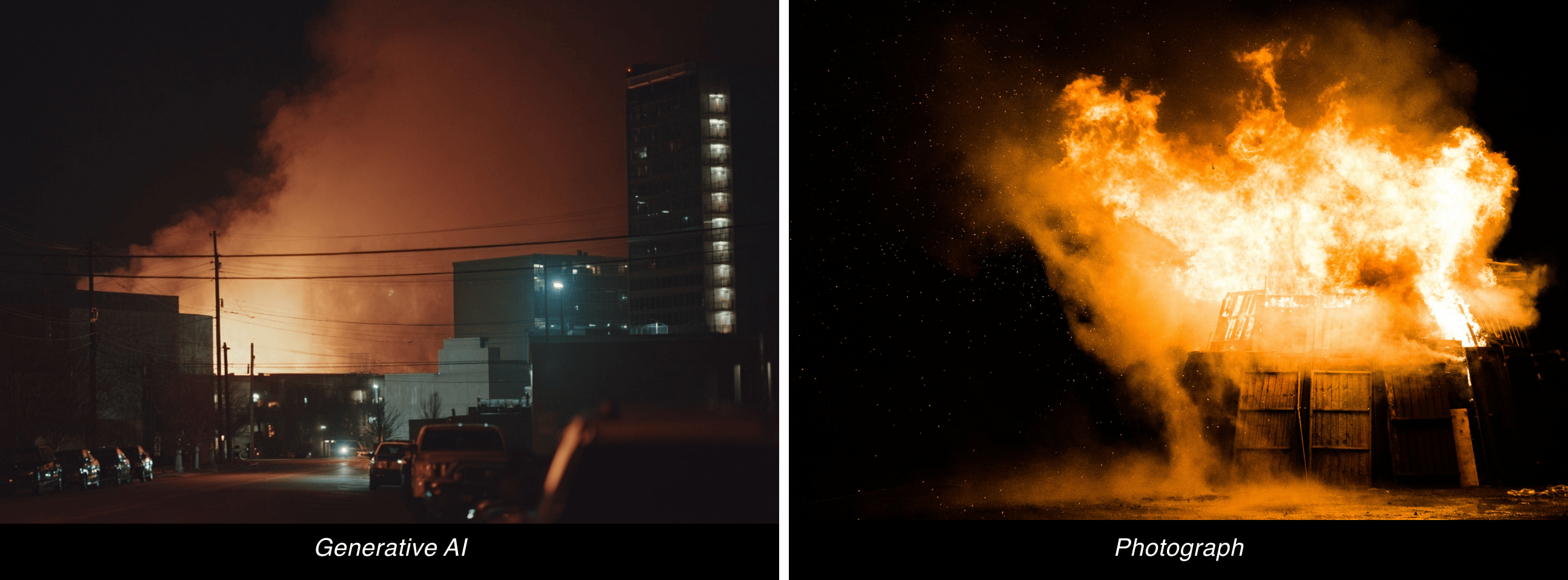 Last week, we kicked off our AI vs. Reality face-off with raging fires, and now for the moment of truth, if you guessed the right one was the real deal, you got it right. The left image was created with Midjourney, demonstrating how convincingly it can replicate real-world lighting, texture, and depth.